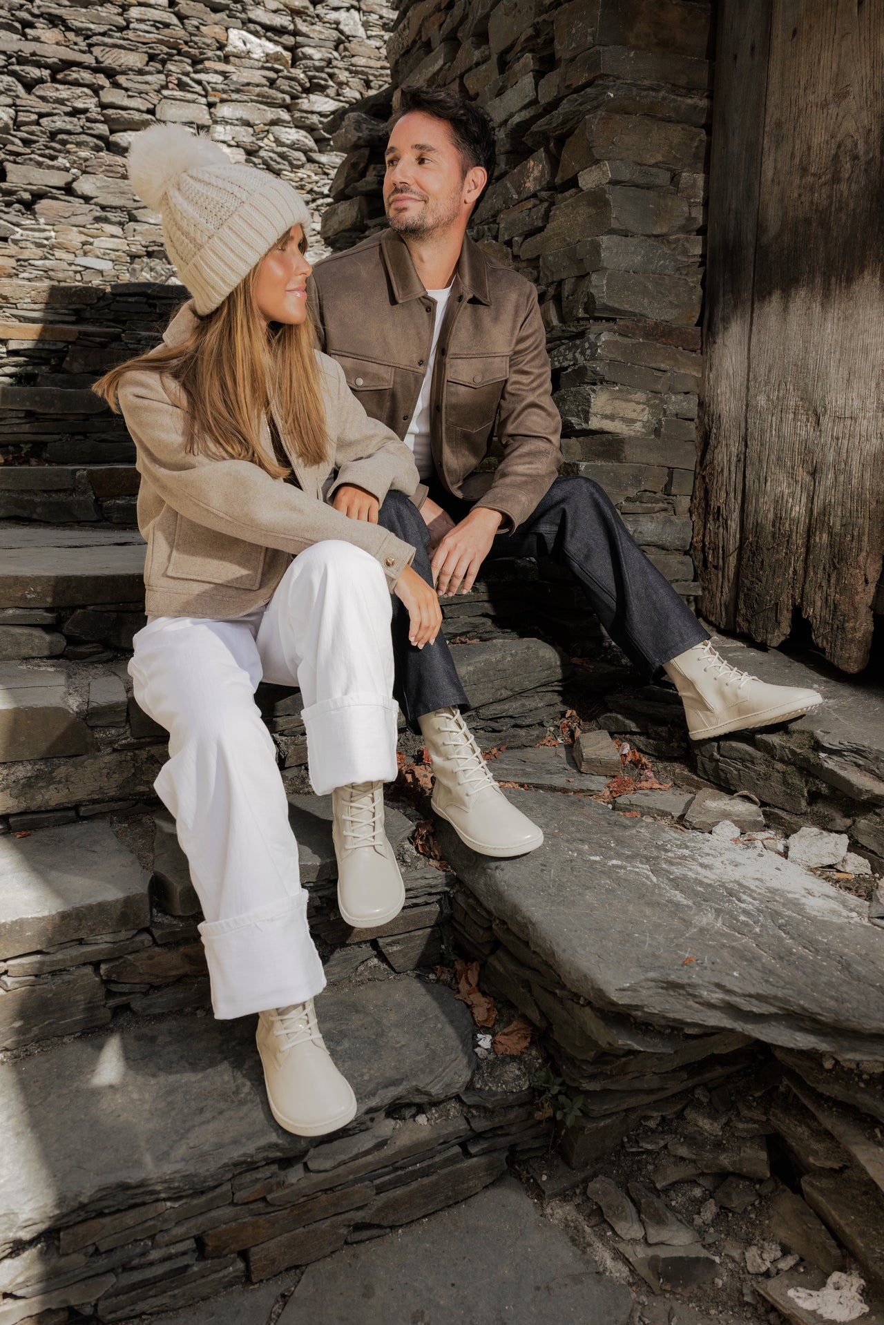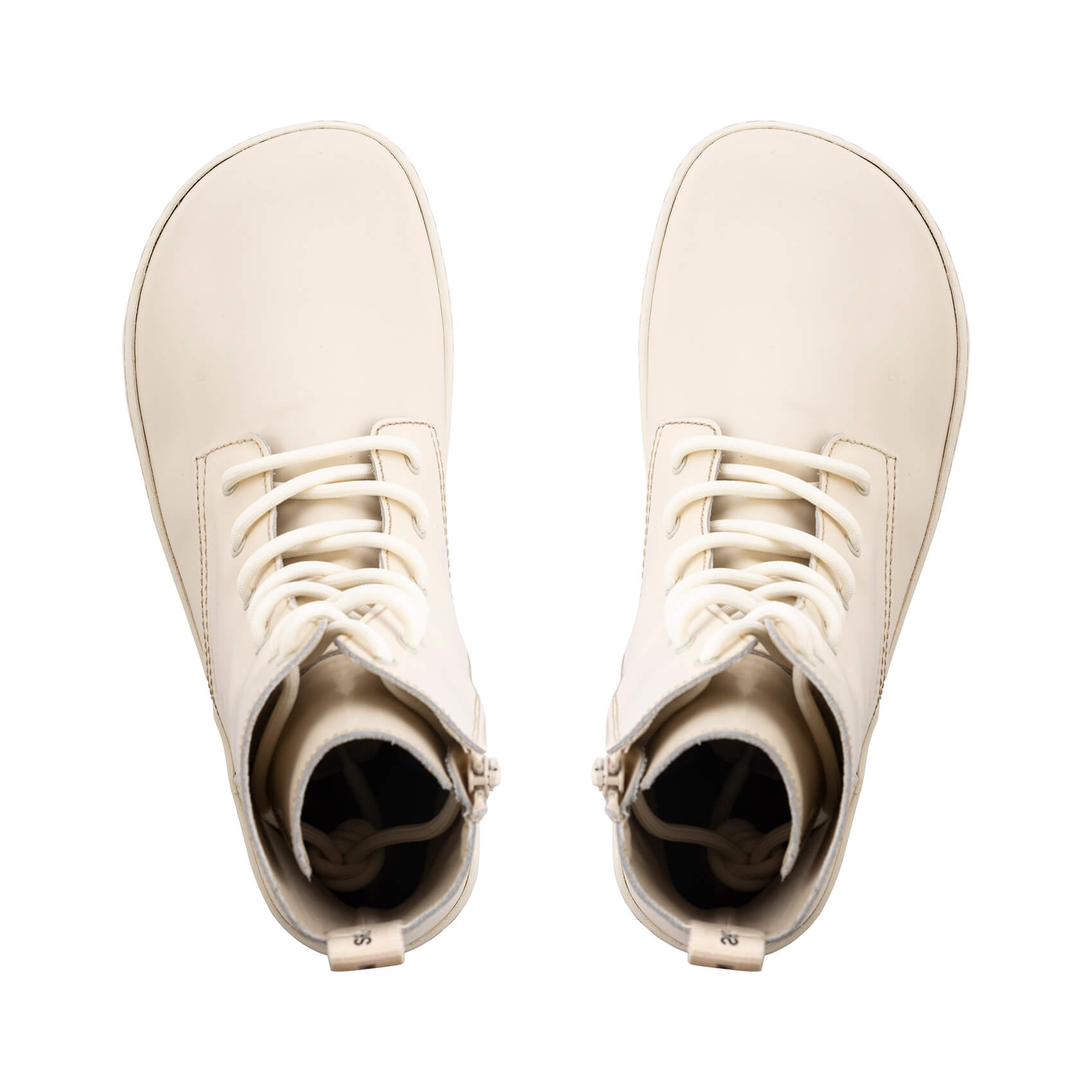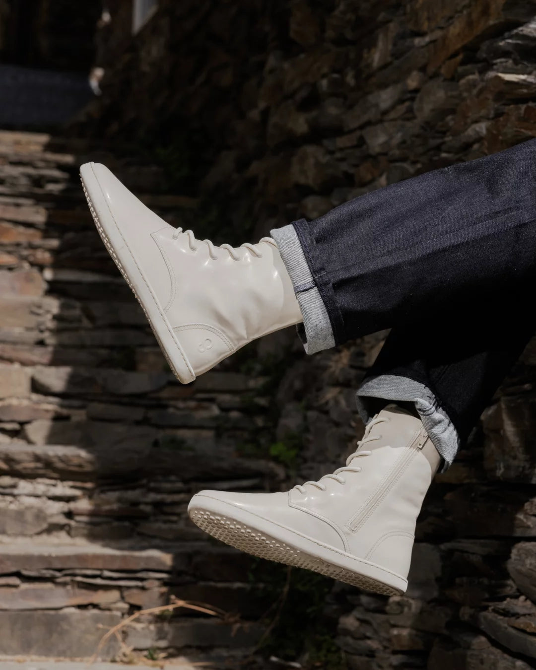 The MAVERICK barefoot boots in Glossy Vanilla are one of the best alternatives for those seeking stylish, healthy footwear with a natural feel. These unisex Maverick boots combine the bold aesthetic of classic icons like Dr Martens thin sole styles with the comfort and freedom of true foot shaped boots - making them an ideal choice for anyone searching for Dr Martens for wide feet but wanting more space, flexibility, and all-day comfort.