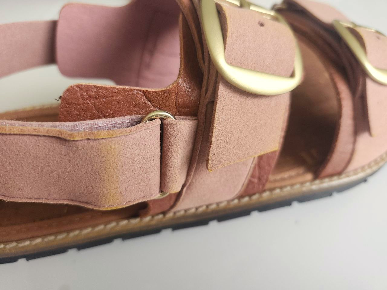 There’s a slight yellowish tint on some parts of the strap, which is why we’re offering a discount. Otherwise, the sandals are in excellent condition. You can take a closer look in the photos we've attached.